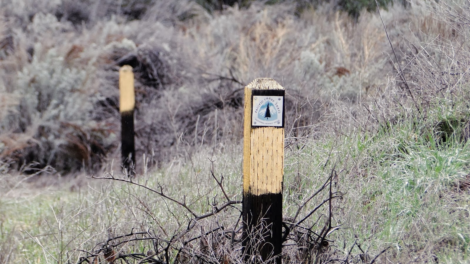If you hike this, keep your eyes peeled for the PCT markers. There are a lot of them around here, and for good reason. The PCT’s tread is crossed frequently by jeep trails, livestock paths, and use trails. Without following the markers, one will quickly become lost through the myriad side options, many of which look more promising than the actual PCT. Also be aware that many of the PCT markers have been knocked over. I tried to upright them all, but my work will be undone by a stiff breeze. As long as you follow the markers, you won’t get lost.