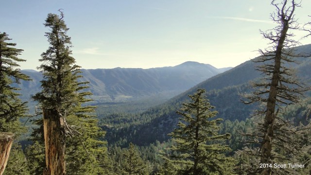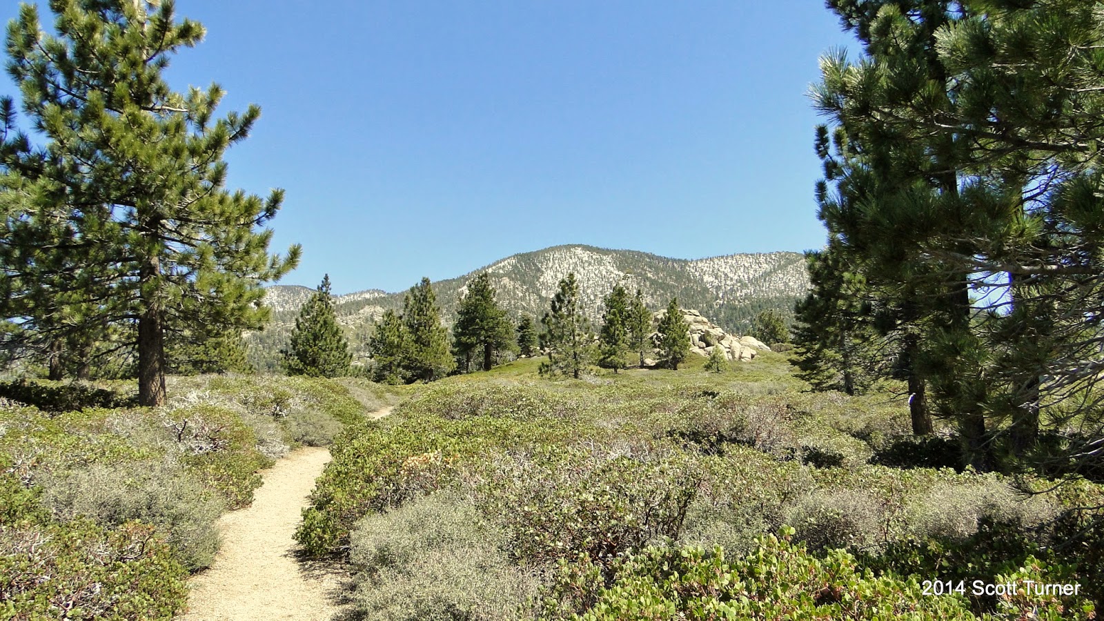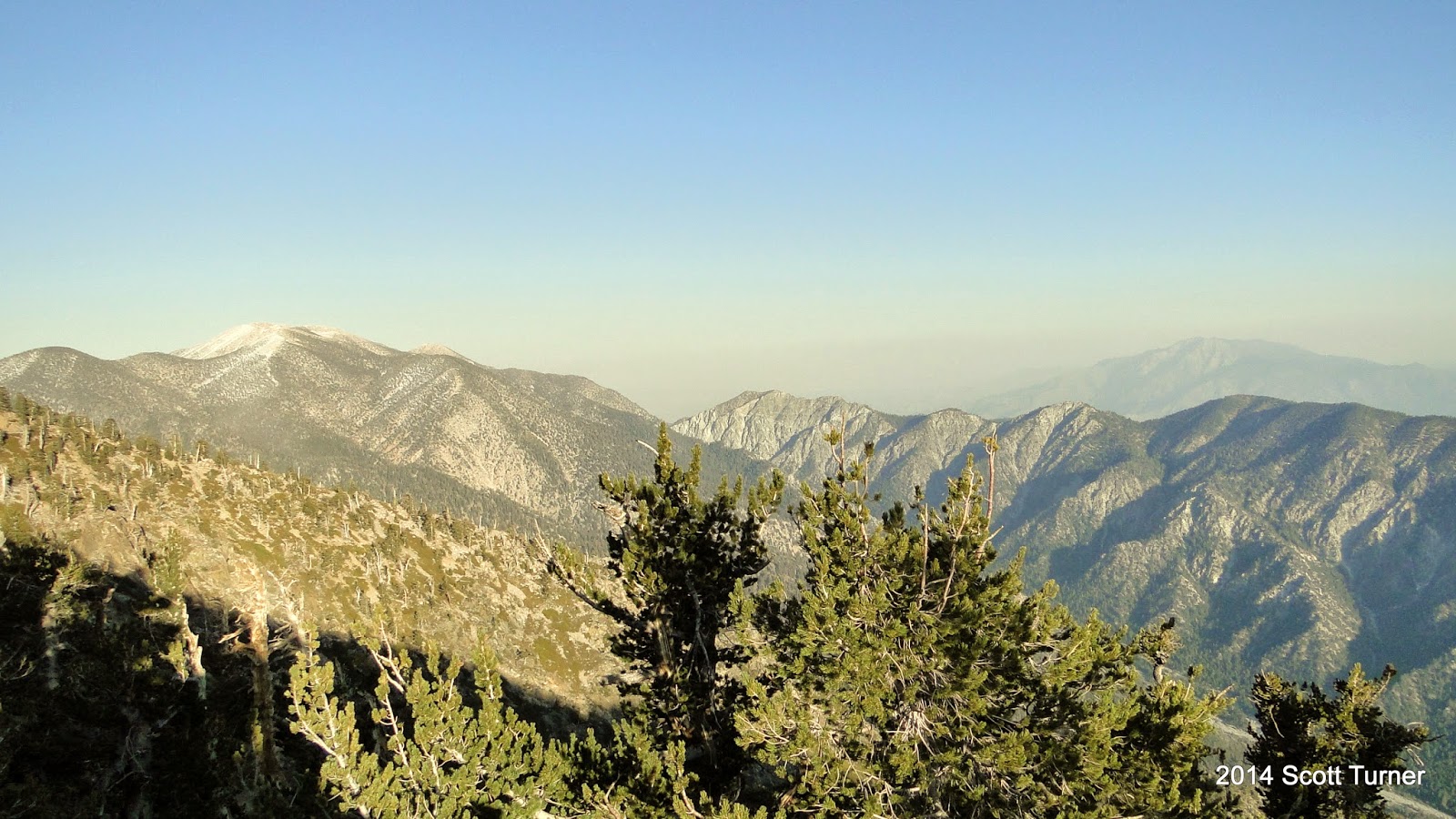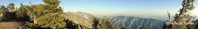 The trail starts out from the Angelus Oaks Trailhead and wastes no time climbing the west face of the ridge. The trail switchbacks up through mixed-conifer and black oak forest and eventually gains a nice view of the Mt. Baldy mountain complex that becomes more expansive with every step. The view toward Big Bear, including Santa Ana Canyon also develops nicely, giving expansive vistas from the very start.