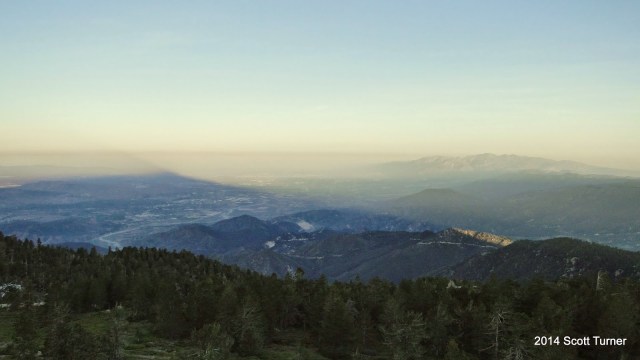 | San Bernadino Peak’s shadow over Riverside. Baldy looming to the west |