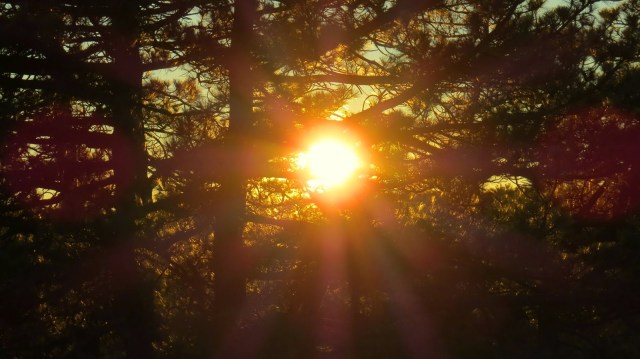 | Sun Setting through Jeffrey Pines on the pacific Crest Trail |